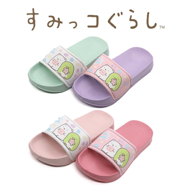 【25%OFFセール 9/11 1:59まで】 すみっコぐらし サンダル キッズ 子供 靴 スリッパ 水色 パープル ピンク キャラクター しろくま ぺんぎん? シャワーサンダル かわいい 軽量 軽い 疲れにくい クッション性 夏 海 女の子 人気 SM-9209C