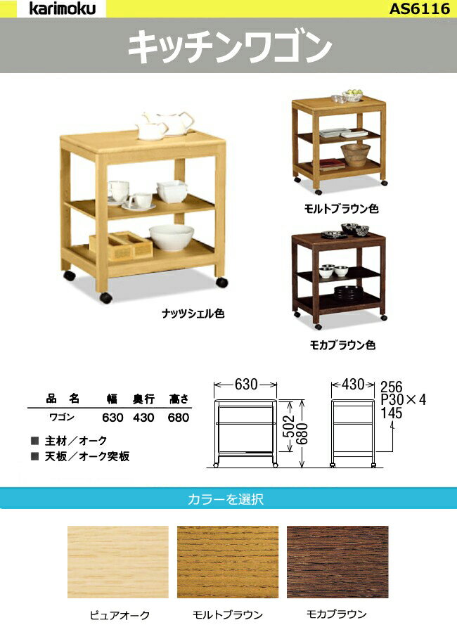 カリモク ワゴンAS6116木製 カウンター キャスター キッチン