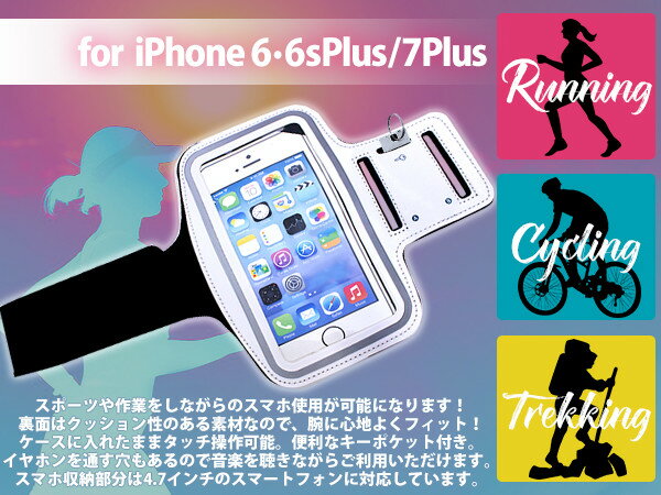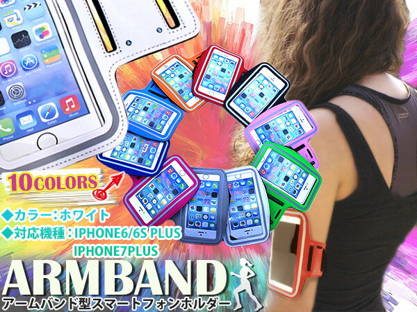 【iPhone6Plus/6sPlus/7Plus ホワイト/白】アームバンド アームポーチ スポーツ フィットネス ランニング トレーニング アームケース iPhoneケース iPhoneカバー ジョギング サイクリング ランニングアームケース ジム アームポー