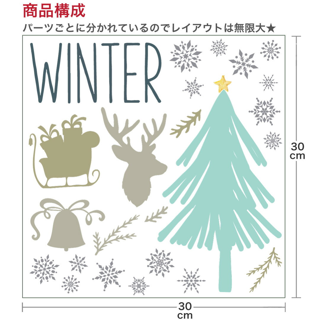 ウォールステッカー クリスマス Christmas Xmas 飾り 30×30cm Ssize シール式 装飾 オーナメント ツリー リース xmas Xmas DIY サンタ パーティー イベント サンタ ツリー 雪の結晶 飾り 017077