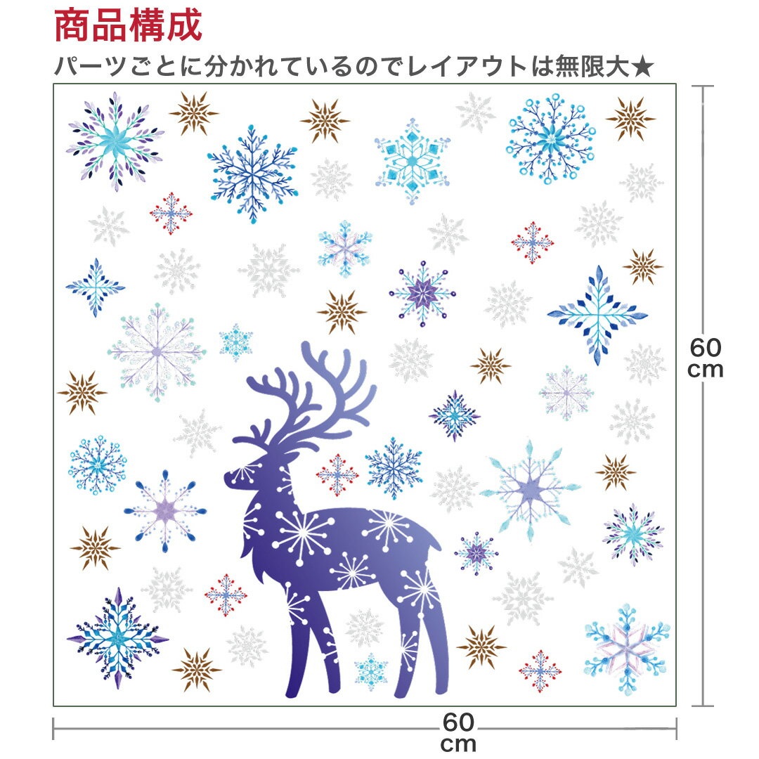 ウォールステッカー クリスマス Christmas Xmas 飾り 60×60cm Msize シール式 装飾 オーナメント ツリー リース xmas Xmas DIY サンタ パーティー イベント サンタ トナカイ 雪の結晶 青 017053