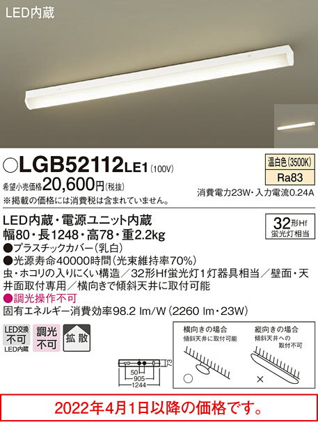 キッチンベースライト(温白色)LGB52112LE1(電気工事必要)パナソニックPanasonic