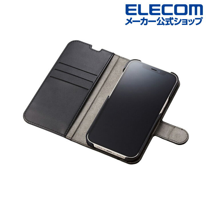 エレコム iPhone 13 Pro 6.1inch 3眼 用 ソフトレザーケース 薄型 磁石付 ステッチ 抗菌 2021 アイフォン iphone13 6.1インチ 3眼 ソフトレザー ケース カバー 手帳型 UltraSlim ブラック PM-A21CPLFUPVBK